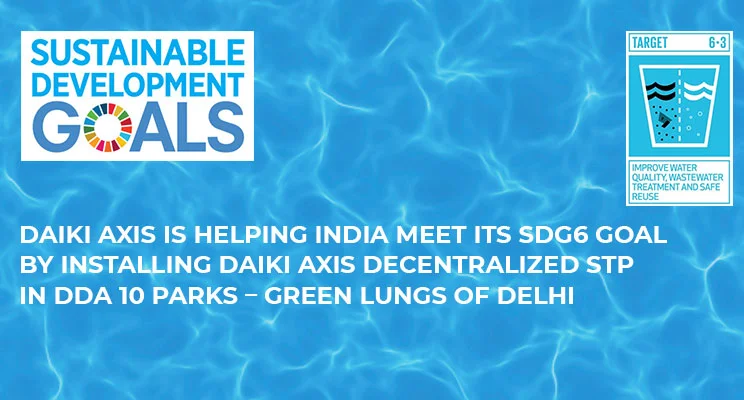 Daiki Axis is helping India meet its SDG6 goal by installing Daiki Axis decentralized STP in DDA 10 Parks – Green Lungs of Delhi